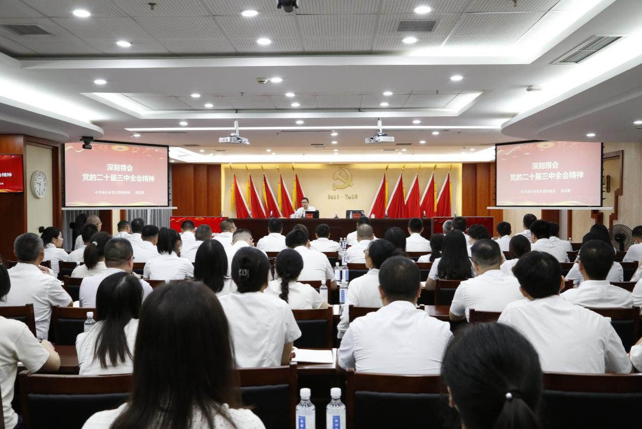 根据市委关于学习贯彻党的二十届三中全会精神宣讲工作的安排,8月28日,市委宣讲团成员,太阳成集团tyc33455cc公司党委副书记、经理刘富胜出席集团党委理论学习中心组专题学习(扩大)会议,宣讲党的二十届三中全会精神。集团在家领导班子成员、总部全体中干和党员,渝水资源股份公司、西部水资源公司、管理咨询公司领导班子成员、部分党员代表参会学习。