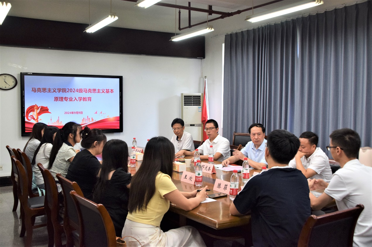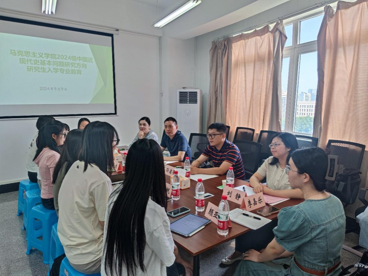 9月9日,2024级研究生二级方向入学教育在新图书馆会议室举行。会议分为思想政治教育、中国近现代史基本问题研究、马克思主义基本原理以及马克思主义中国化研究专业入学教育四个分会场,各导师团队、2024级研究生以及高年级研究生代表参加了会议。