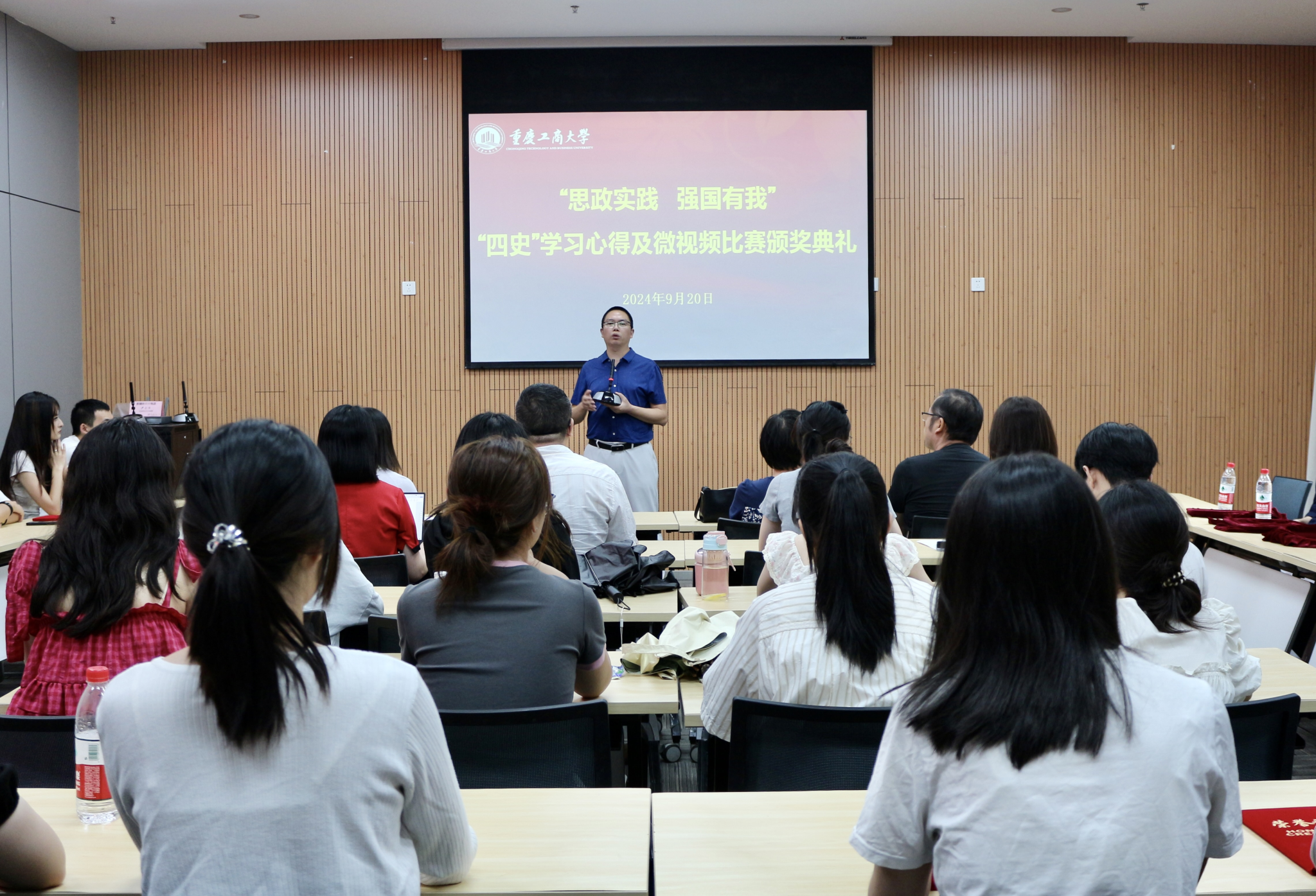 9月20日下午,“思政实践,强国有我”——“四史”选择性必修课程学习心得及微视频比赛颁奖典礼在新图书馆第二会议室举行。太阳成集团tyc33455cc经理刘富胜、部分指导教师代表、获奖员工代表参加了典礼,典礼由思想政治理论课综合实践教学指导中心主任胥炜主持。