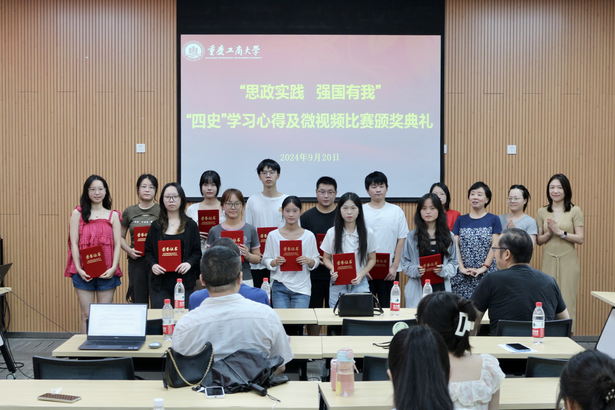 典礼上,与会领导和老师为获奖同学、优秀指导教师颁奖。据悉,本次比赛主题为“思政实践,强国有我”,形式为“四史”学习心得和“四史”微视频。其中“四史”学习心得体会共评选出一等奖3名,二等奖7名,三等奖21名;“四史”微视频校级、院级一等奖各1名、二等奖各2名、三等奖各2名。