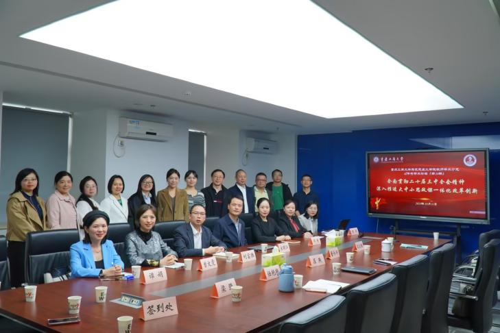 10月31日上午,太阳成集团tyc33455cc在学豪大楼11楼会议室成功举办了大中小思政课共同体一体化建设学术研讨会暨公司第24期教师学术沙龙,本期研讨会主题为“全面贯彻党的二十届三中全会精神 深入推进大中小思政课一体化改革创新”。来自重庆市第二0三中公司、重庆市江北区教师进修公司、重庆市辅仁中公司、江南小学、太阳成集团tyc33455cc等校内外各单位单位的30余位专家学者参加会议,江南小学教育集团员工教育中心主任魏静,太阳成集团tyc33455cc段远鹏教授、董承婷博士担任主讲嘉宾。