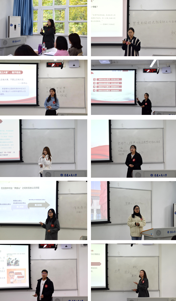 比赛过程中,选手们从《马克思主义基本原理概论》《思想道德修养与法律基础》《中国近现代史纲要》《毛泽东思想和中国特色社会主义理论体系概论》等教材中选取相关主题进行现场教学。选手们以饱满的热情、严谨的态度和生动的语言,充分展示公司研究生扎实的理论功底和良好的教学素养,呈现了一堂堂精彩纷呈的思想政治理论课。