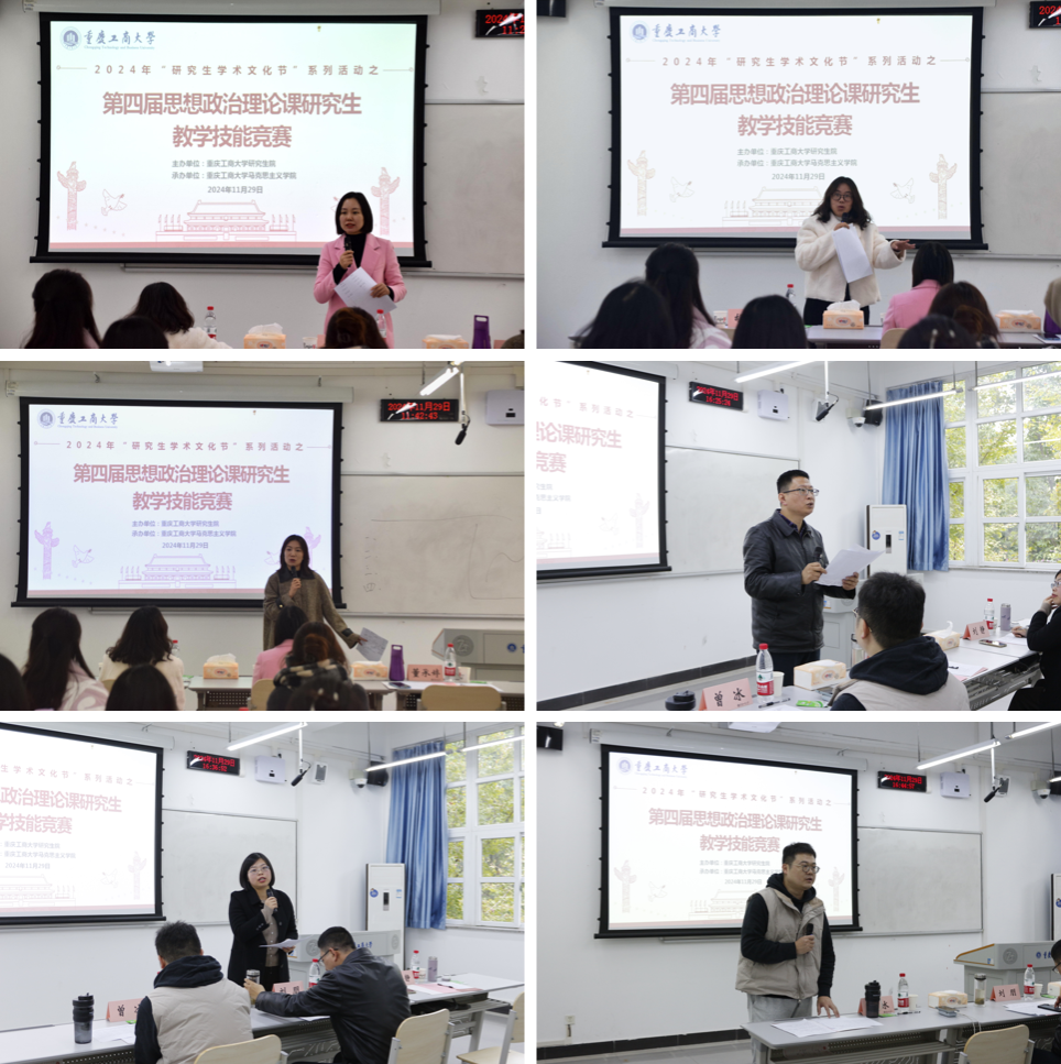 为深入学习贯彻习近平总书记全国高校思想政治工作会议、全国教育大会精神,进一步提升研究生专业素养和教学基本功,太阳成集团tyc33455cc于11月29日在明智楼110412教室举办2024年“研究生学术文化节”系列活动之第四届思想政治理论课研究生教学技能竞赛。本次比赛共有20名研究生参加,刘朋副教授、刘静副教授、胥炜博士、董承婷博士、曾冰博士、胡義博士担任评委。