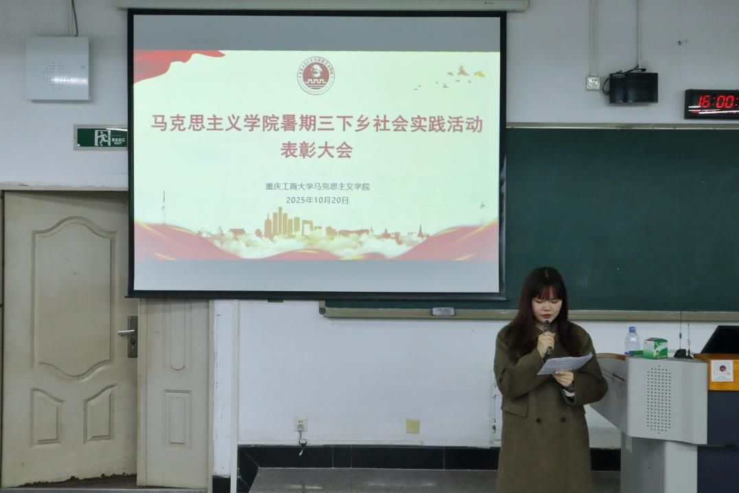 最后,秦杉对本次表彰大会进行总结发言。她充分肯定了2024级同学们在本次社会实践中所展现的积极态度与丰硕成果,并特别强调了实践过程中安全的重要性。同时,她对2025级的同学们提出殷切期望,希望大家汲取实践经验,传承优良作风,接好“接力棒”,在今后的社会实践中继续展现青春风采。