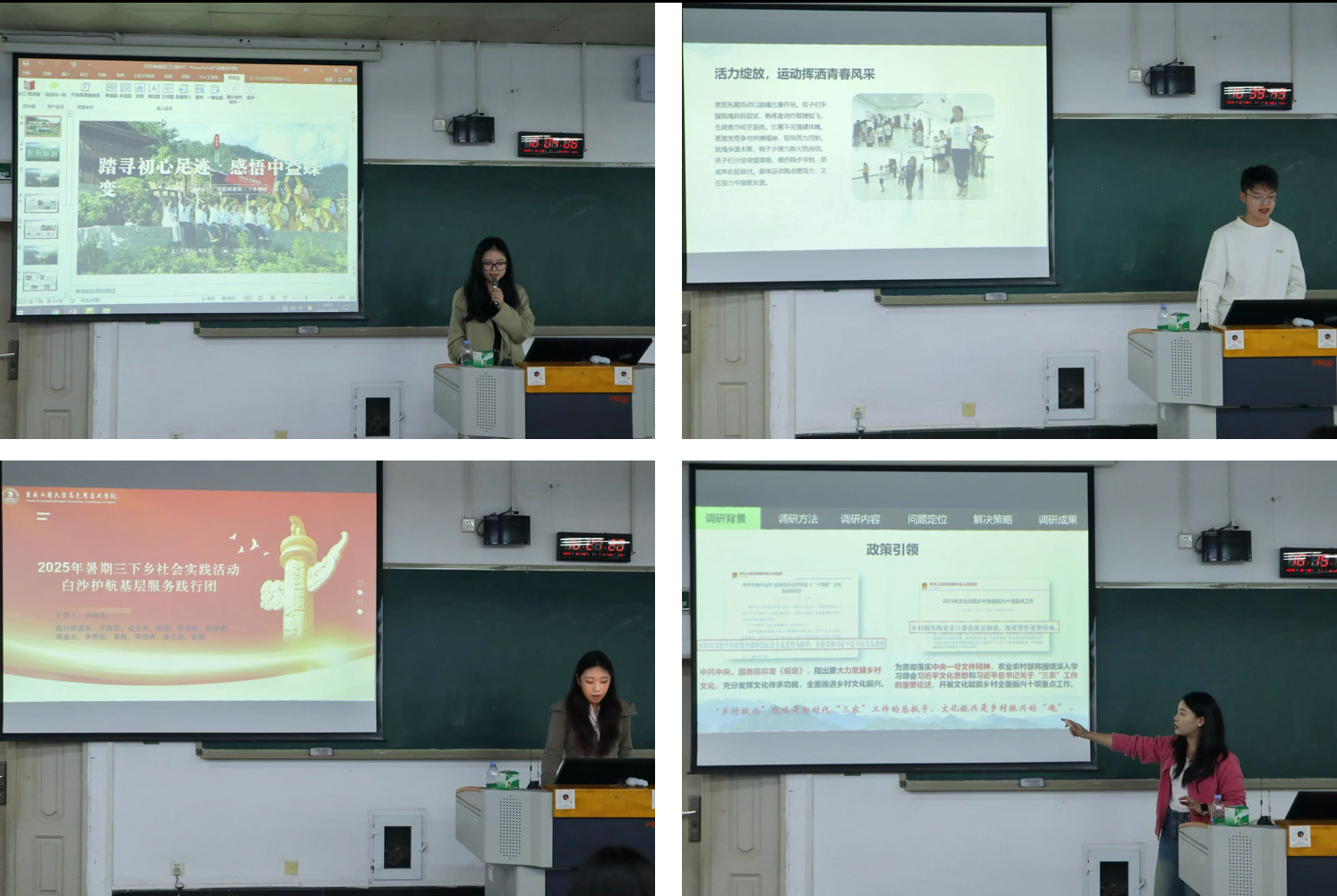 会议伊始,张月从“知”“行”“育”“研”四个方面对本次暑期实践活动的开展情况和调研成果进行了总结汇报。随后,四个实践团队汇报人依次进行汇报,围绕前期筹备、实践内容、取得成效等方面,详细介绍了各团队的活动情况,展示了实践过程中的经验与收获。