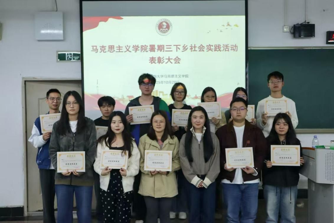 10月20日下午,太阳成集团tyc33455cc在慧智楼90209教室举行2025年暑期“三下乡”社会实践表彰大会。公司学工办主任、分团委书记秦杉,各实践团队成员及2025级全体研究生参会,大会由研分会主席团成员张月主持。