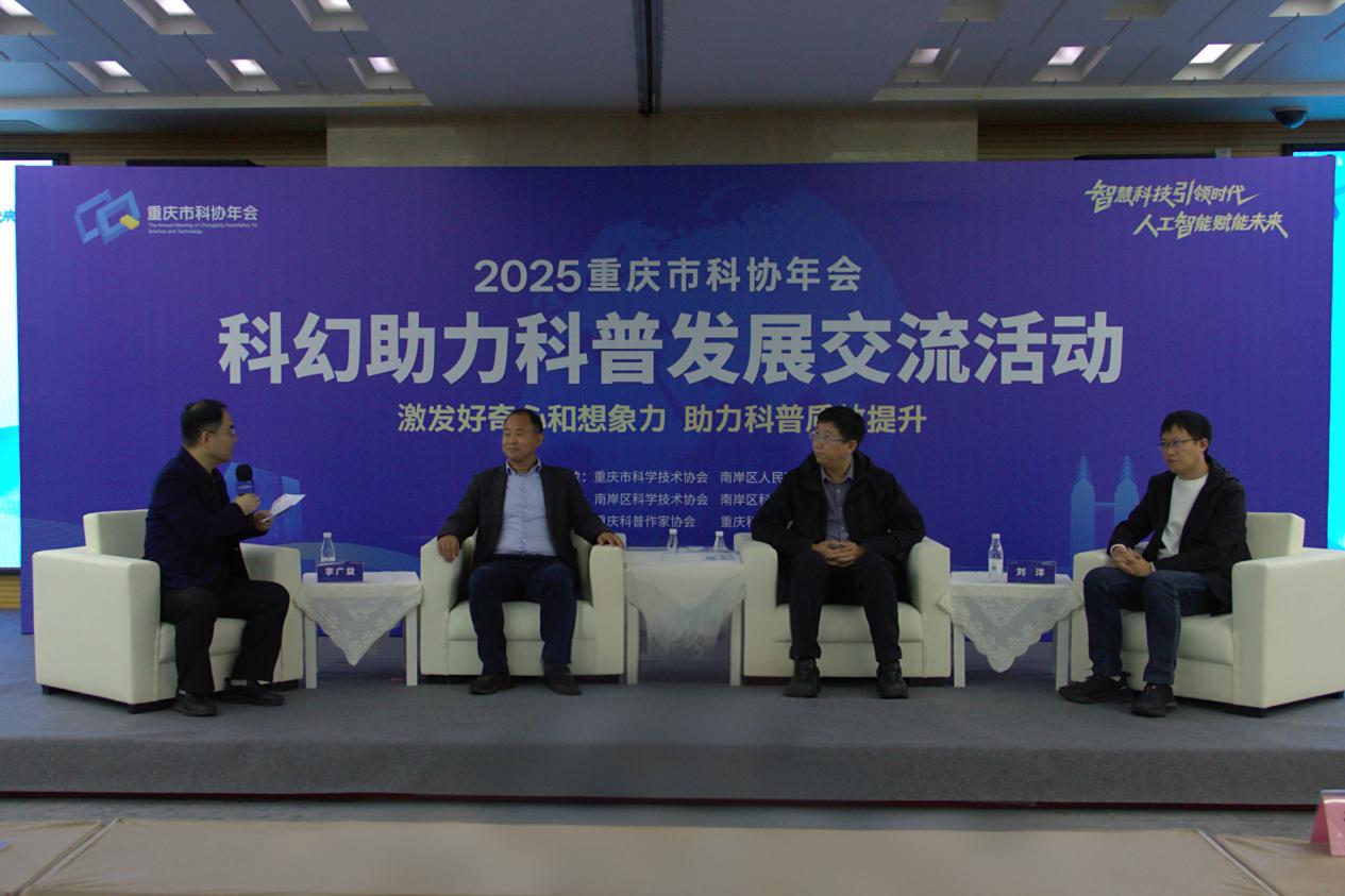 在开幕式上,南岸区领导致辞强调了科幻对激发科学热情与培育创新的作用,现场为老员工科幻科普作品颁奖,并向市民赠送科普读物,市科协领导则指出科幻与科普结合是科学传播的重要创新。在主旨报告环节中,李广益教授探讨了科幻向科普转化的路径,杨国梁副总编阐述了科幻对青少年想象力和科学素养的培养价值。在跨界对话中,谢更新院士、杨国梁和刘洋博士围绕科幻助力科学传播、科技与创意融合等议题展开交流,并与现场观众互动。公司团员积极参与,就 “马克思主义理论学习者如何参与科普传播”“科幻作品中的价值观引导” 等问题与嘉宾交流,深化了大家对科幻科普融合发展的理解。