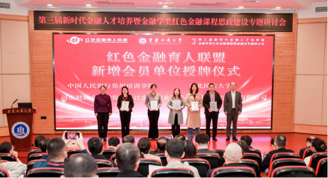河南财政金融公司、中国人民银行郑州培训公司、长春师范大学、西北民族大学、广州科技贸易职业公司等14家新增会员单位接受红色金融育人联盟授牌。