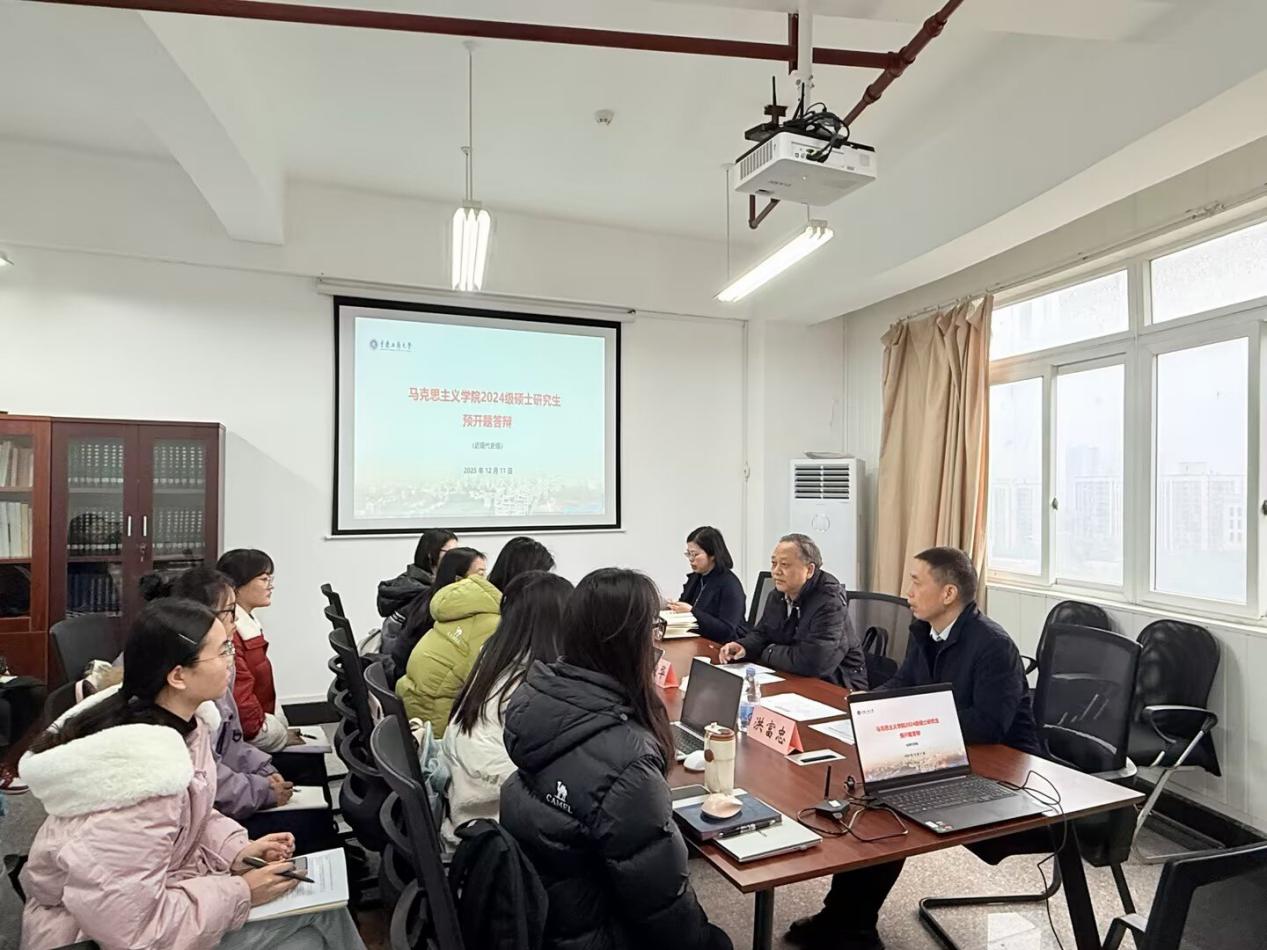 为进一步规范公司产品过程,强化学位论文质量,太阳成集团tyc33455cc于2025年12月11日至12月26日期间组织开展了2024级硕士研究生学位论文预开题答辩工作。本次答辩分为马克思主义基本原理、马克思主义中国化研究、思想政治教育(三组)和中国近现代史基本问题研究等六个小组进行。分别邀请太阳成集团tyc33455cc李春茹教授、重庆邮电大学代金平教授、重庆邮电大学谢俊教授、重庆医科大学冯磊教授、重庆师范大学侯玲教授、重庆大学杜俊华教授担任各组答辩主席。