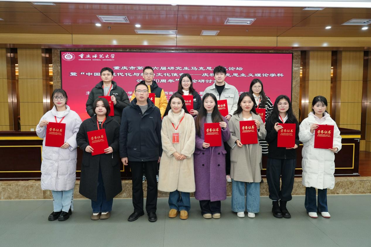 为深入学习贯彻习近平文化思想,推进中国式现代化建设事业高质量发展,值此马克思主义理论学科建立20周年之际,“重庆市第十六届研究生马克思主义论坛暨中国式现代化与新的文化使命——庆祝马克思主义理论学科建立20周年”理论研讨会于12月20日在重庆师范大学博雅楼503会议室举行。公司共有18名员工获奖,其中一等奖4人、二等奖8人、三等奖6人,成绩位居全市高校前列。公司党委副书记、经理刘富胜教授与员工工作办公室(分团委)主任、书记秦杉带领一、二等奖获奖员工代表参会。