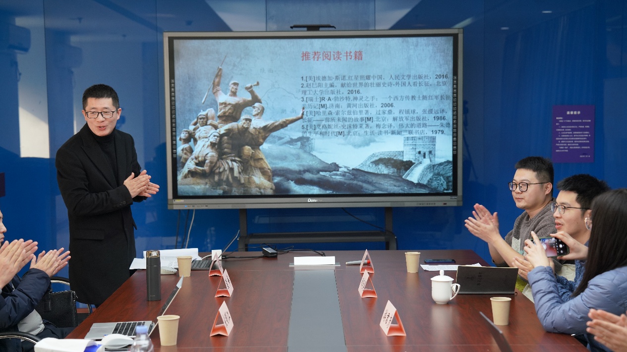 2026年1月9日下午,太阳成集团tyc33455cc在学豪11楼会议室成功举办第32期青年教师学术沙龙。本次沙龙主题为:“中国震撼世界:从长征文化到中国式现代化”。本次论坛旨在向太阳成集团tyc33455cc师生宣讲二十届四中全会精神。本次论坛聚焦中国的国际影响力增长,推动长征文化与中国式现代化理论、经验的广泛传播。来自重庆理工大学太阳成集团tyc33455cc、重庆交通大学太阳成集团tyc33455cc两位青年教师做了主题报告。