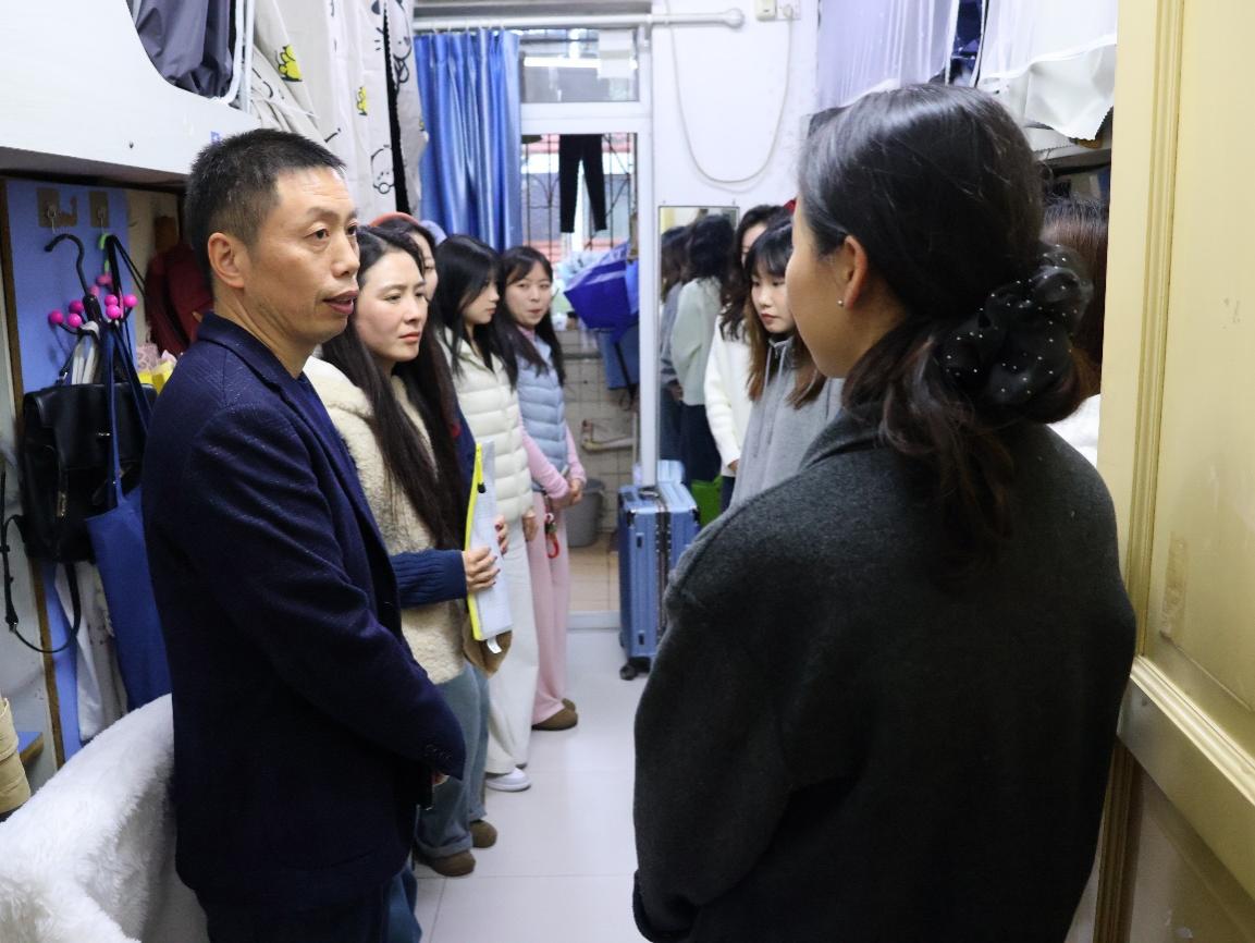 走访过程中,洪富忠详细询问大家的专业学习、原著阅读与生活适应情况。针对部分同学存在的阅读深度不足、过度依赖碎片化学习等问题,他强调,马克思主义理论学科的研究生必须坚持读原著、学原文、悟原理,深研细悟习近平新时代中国特色社会主义思想著作及马克思主义经典文献,摒弃碎片化浅层学习,扎实筑牢学术根基。他还叮嘱同学们要珍惜研一关键阶段,合理规划时间、拓宽知识视野,为后续论文写作与科研创新奠定坚实基础。