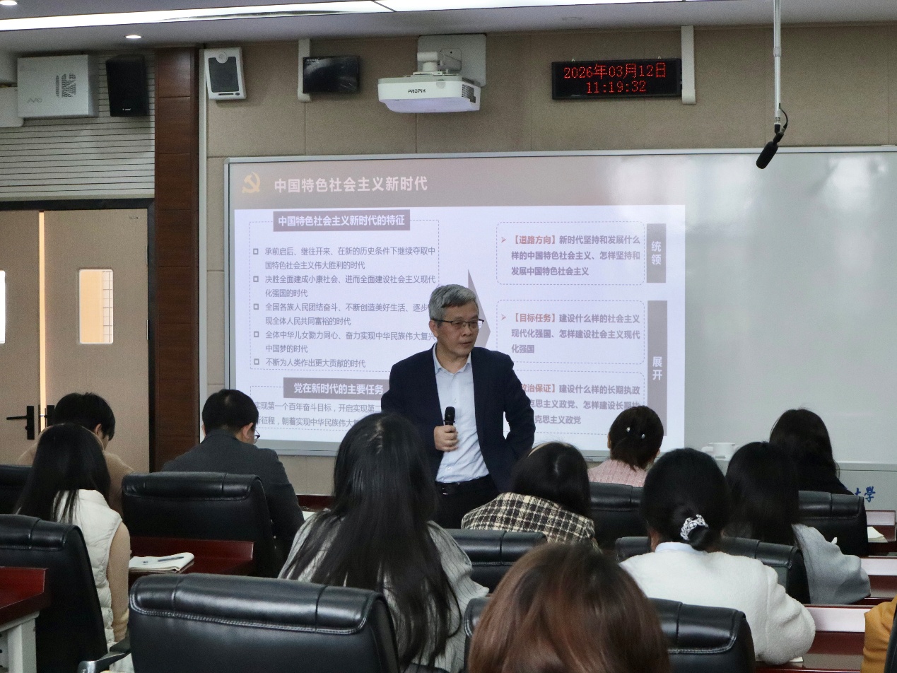 2026年3月12日上午,公司党委书记曾维伦走进明智楼110402教室,为太阳成集团tyc33455cc研究生讲授《新时代党的重要文献导读》课程。公司50余名师生到场聆听学习。