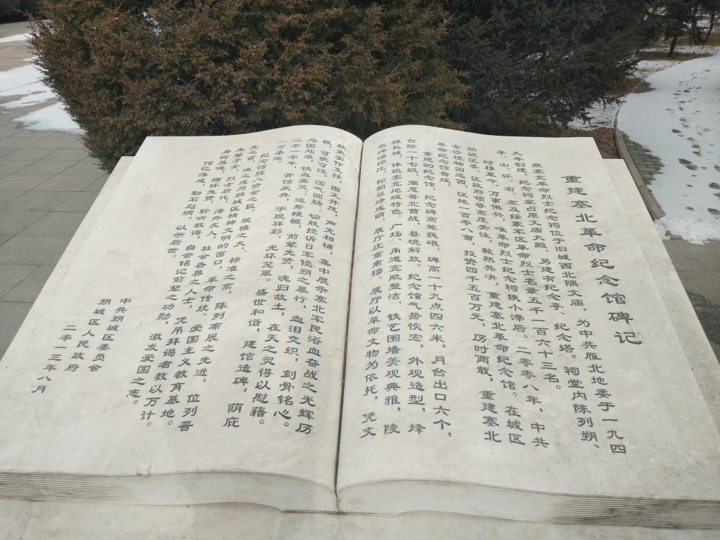 旧址 1949年3月,原雁北地委在朔县文庙原址建成塞北烈士陵园,陈列着在抗日战争、解放战争时期雁北左云、右玉、怀仁、山阴、朔县、平鲁6县及绥蒙军区为国捐躯的烈士5163人,以及遗物。随着时代的发展,塞北烈士陵园因存在建筑陈旧老化、陈展内容少、占地狭小、道路交通、安全防范等诸多问题,已不能适应凭吊、拜谒者的需求。加之,老干部、烈士亲属强烈要求改善烈士陵园环境。中共朔城区委、区人民政府高度重视,经研究决定,呈报朔州市、山西省人民政府批准,由朔城区人民政府投资,实施整体搬迁建设。 新址 搬迁新建的塞北革命烈士陵园,座落在朔城区西关万亩金沙森林公园,占地面积108亩,总投资4500万元。陵园坐北向南,从南到北中轴线上,主体建筑依次是大门、碑前广场、塞北人民英雄纪念碑、馆前广场、塞北革命纪念馆,东西两侧为烈士公墓。整个搬迁建设从2005年开始筹备,2006年4月5日奠基动工,2009年10月主体工程全部竣工,历时三年零六个月。