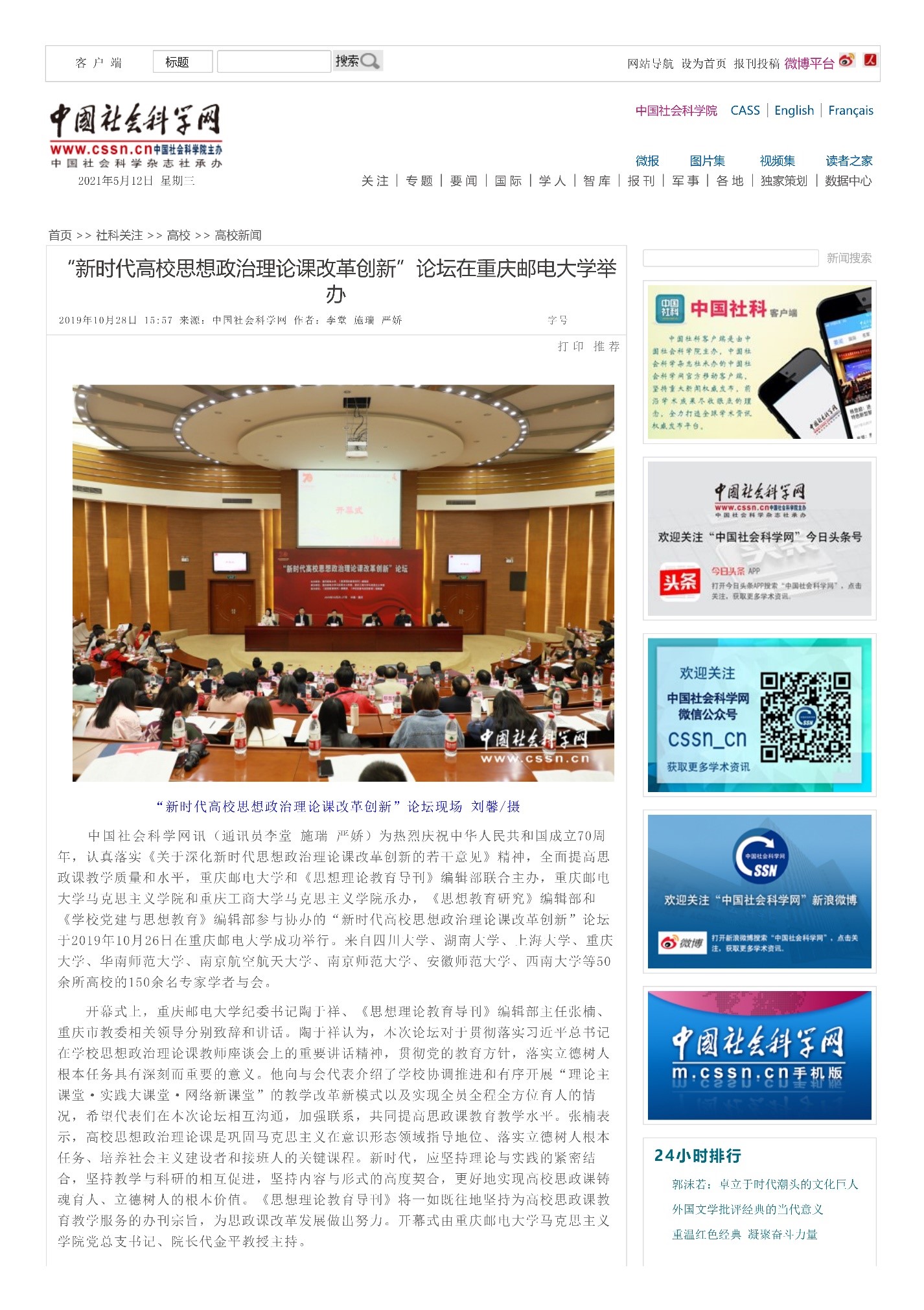 “新时代高校思想政治理论课改革创新”论坛在重庆邮电大学举办