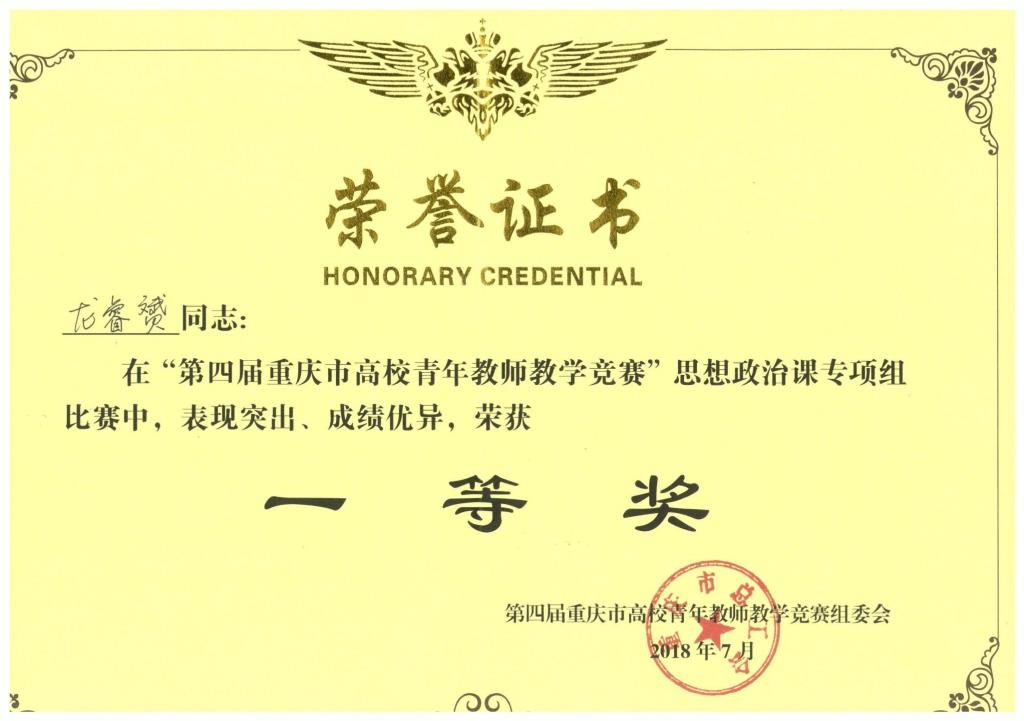 2018年重庆市高校青年教师教学竞赛一等奖