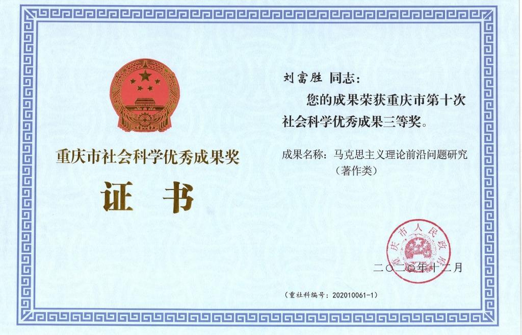 重庆市第十次社会科学优秀成果三等奖1