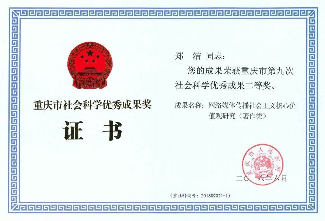 重庆市第九次社会科学优秀成果二等奖