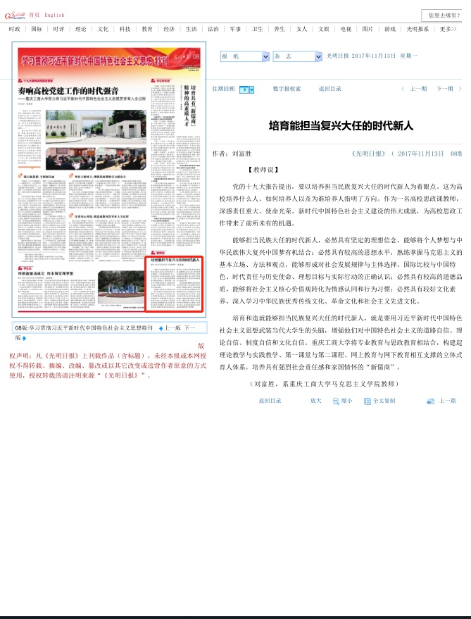 《光明日报》培育能担当复兴大任的时代新人