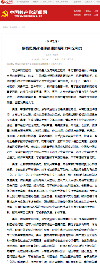 《人民日报》增强思想政治理论课的吸引力和亲和力