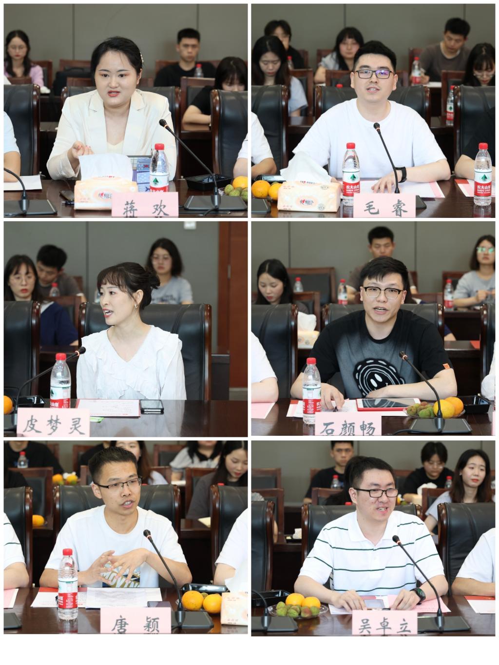 会上,毕业研究生皮梦灵、毛睿、唐颖、吴卓立、石颜畅、蒋欢先后交流论文写作、辅导员上岸、求学心路、求职、考博经验。皮梦灵认为毕业论文写作思想上要高度重视,要早做准备,要坚持每日写,要多与导师沟通交流,要放松心态认真写。唐颖叙述了自己三年研究生学习经验,他希望同学们要珍惜时间,树立理想;要勤学好问,致知通达;要躬身践履,砥砺芳华;要乘风破浪,勇往天涯;要大道之行,始于足下。石颜畅则认为要“把心向着伟大光荣正确的党,向着马克思主义,练就好马克思主义的看家本领,向着自己的研究方向,向着自己的赛道和人生方向。更为关键的是行有所为,要朝着明确的目标持之以恒地做着正确的事情。蒋欢在分享中将自己考博前的论文准备、与导师的沟通联系、笔试面试心路历程娓娓道来,她说:“在困难的时候,多哄哄自己,很庆幸自己生活在一个可以自由全面发展的新时代。”“岁月不居,时节如流。”在交流中,同学们畅言,研究生的三年时光稍纵即逝而又美好无限,他们希望每个太阳成集团tyc33455cc的员工都能够永争上游,锐意进取,穷则善其身,达则济天下,在学习马克思主义的过程中能够内化于心,外化于行。他们感谢导师的指导和鼓励,感谢辅导员的帮助和守护,感谢所有老师的教诲与关怀,感谢集团公司的教育与培养。