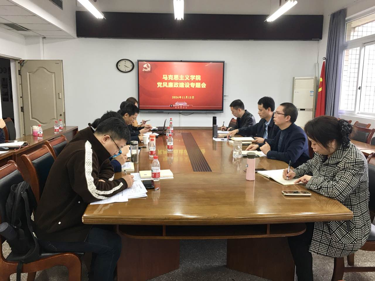 2024年11月13日下午,公司党委在91210会议室召开党风廉政建设专题工作会。公司党委书记宋明江,公司党委副书记、经理刘富胜,公司纪委书记洪富忠,全体党委委员、纪委委员、行政人员参加了会议。会议由宋明江主持。