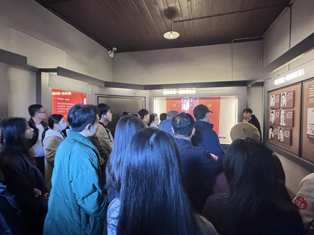 党员队伍还走进白公馆旧址开展实地教学,在讲解员引导下,依次参观了审讯室、牢房等区域,聆听“11·27”烈士的感人故事。泛黄的《狱中八条》手稿,被面绣制的特殊“五星红旗”,让党员们深切感受到革命先烈用生命诠释的忠诚与坚守。