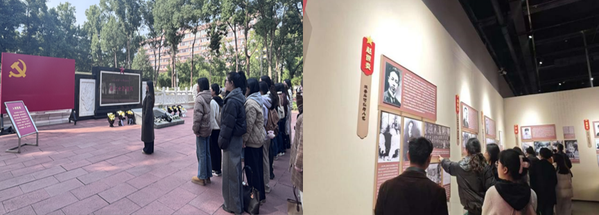 在歌乐山革命纪念馆,通过一张张珍贵的照片、一件件陈旧的文物、一段段可泣的影像,党员同志更加深入地学习到江竹筠、陈然、张露萍、许建业等革命先烈在各种严酷考验前,不屈不挠、坚守信念的英勇事迹,无一不为先辈们的坚强意志和浩然正气所感动。随后,支部党员一行来到歌乐山烈士墓,敬献鲜花、追思悼念,新发展党员在先辈的见证下,面向鲜红党旗,高举右拳,庄严许下为共产主义奋斗终生的铮铮誓言。