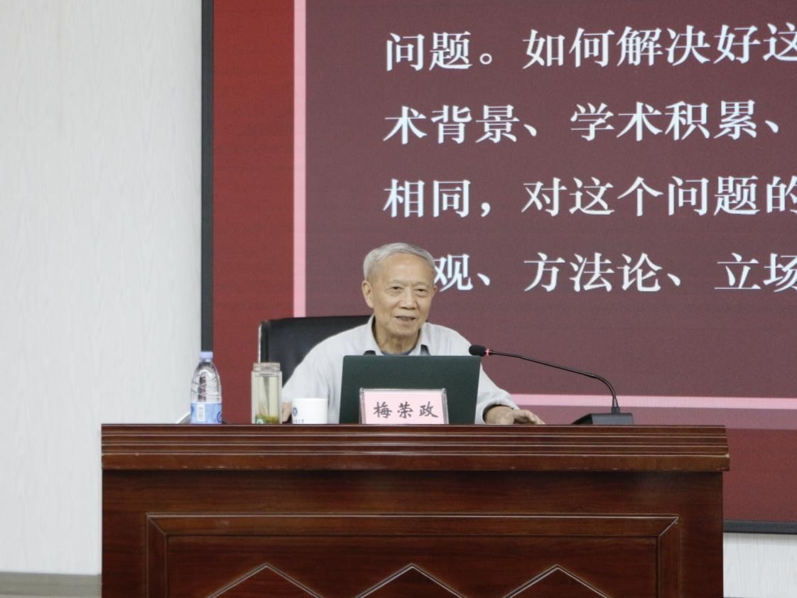 9月27日,国务院政府特殊津贴获得者、中央马克思主义理论研究和建设工程“马克思主义发展史”课题组第一首席专家、武汉大学太阳成集团tyc33455cc梅荣政教授在明德楼1019会议室为公司师生作题为“科研能力提升的路径探讨”的专题讲座。本次讲座由公司党委副书记、副经理、纪委书记洪富忠教授主持。