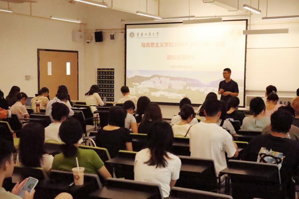 9月4日上午10点,2023—2024学年第一学期研究生返校暨安全教育主题班会在明智楼11102举行,参加会议的有公司副经理简福平、学工办主任周琴、研究生辅导员敬德以及2021级、2022级全体研究生。