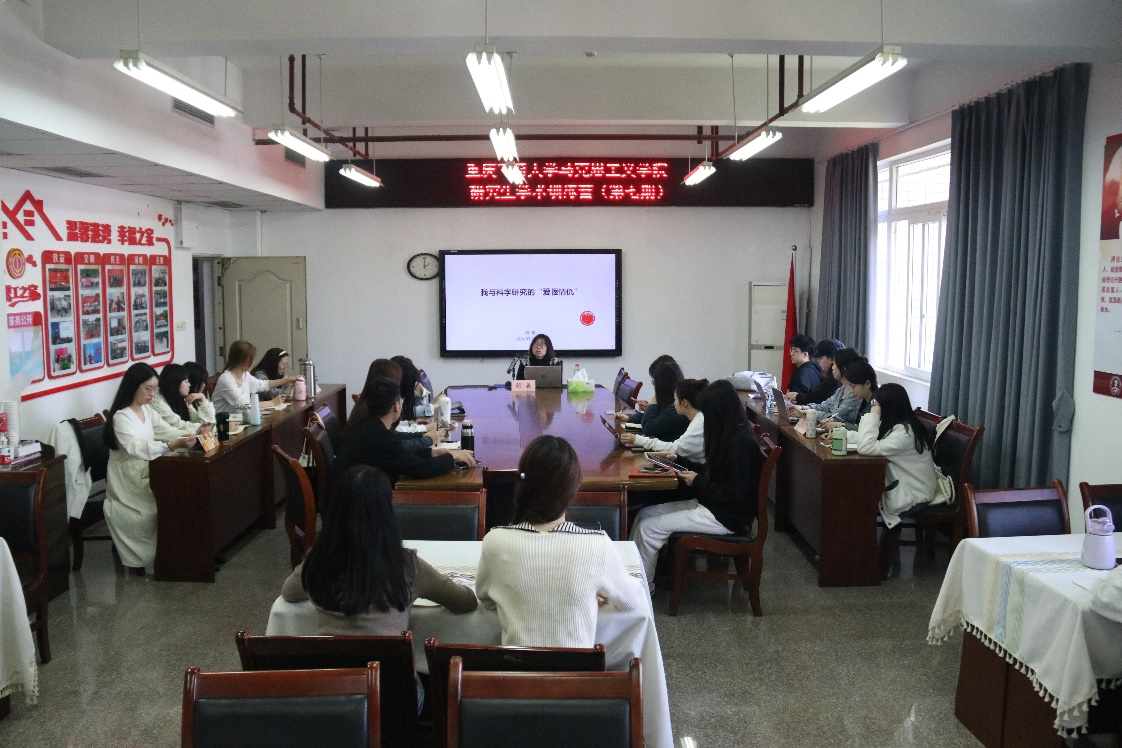 胡義博士以自身科研经历引入主题,向同学们分享了自己的心路历程。随后,她以课题写作为例,对课题申报过程中的具体内容进行了逐一讲解,主要围绕以下四个问题展开:一是要研究什么问题,强调了选择题目、提高“问题意识”的重要性;二是为何研究这个问题,指出了要从导言、文献综述和研究价值三个方面展开阐述,突出研究的目的性;三是如何研究这个问题,讲解了研究思路、研究框架、重难点、研究方法和研究计划的填写原则,突出研究的可行性;四是研究的成效,认为要精准阐释研究目标、创新点和研究成果预测,突出研究的有效性。
