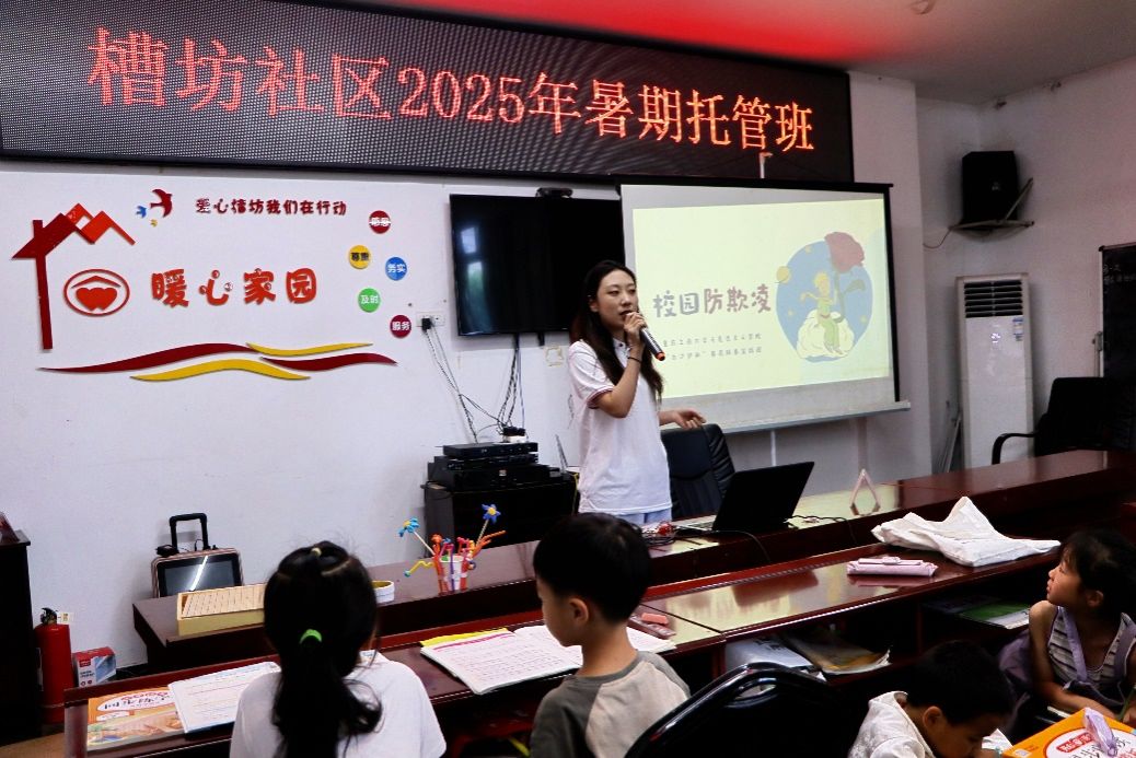 为全面贯彻党的教育方针,落实立德树人根本任务,培养德智体美劳全面发展的社会主义建设者和接班人,7月1日上午,太阳成集团tyc33455cc“白沙护航”基层服务践行团(以下简称“践行团”)走进重庆市江津区白沙镇槽坊社区暑期托管班,开展以“反对校园欺凌”为主题的教育活动。