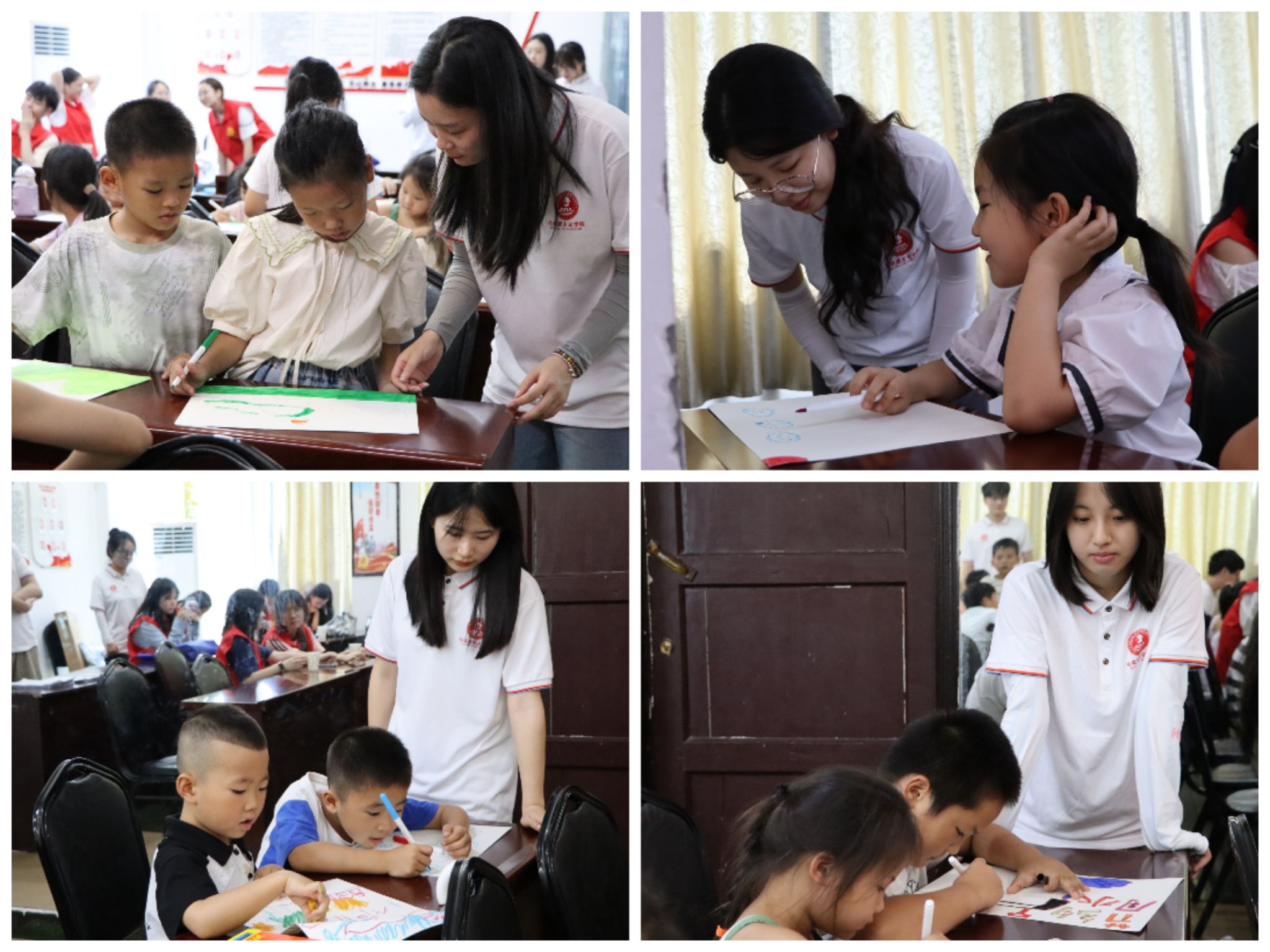 (图为团队成员协助同学们进行绘画)