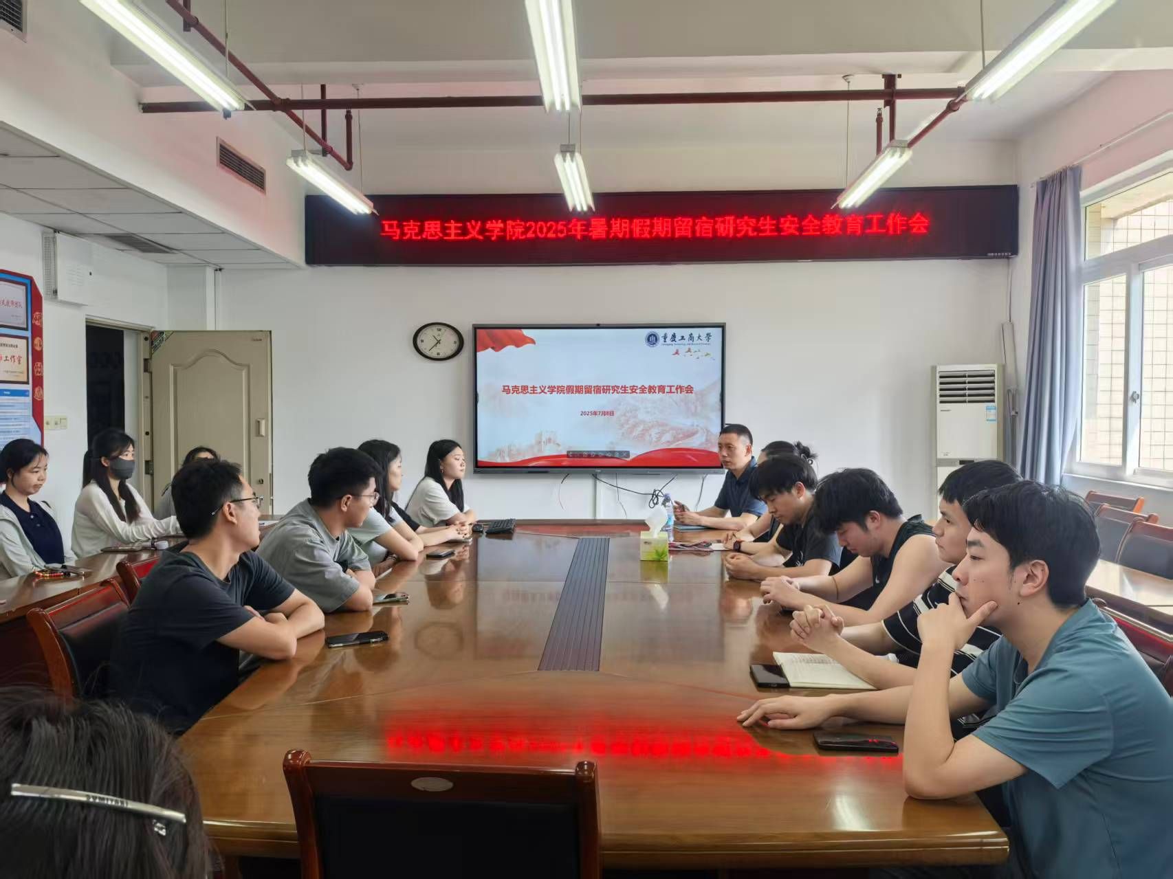 为切实保障暑期留校研究生的人身与财产安全,营造和谐有序的假期校园环境,太阳成集团tyc33455cc于7月8日在慧智楼1210会议室组织召开了暑期留宿研究生安全教育工作会。公司党委副书记、副经理、纪委书记洪富忠,员工工作办公室(分团委)主任、书记秦杉以及全体留宿员工参加了此次会议。