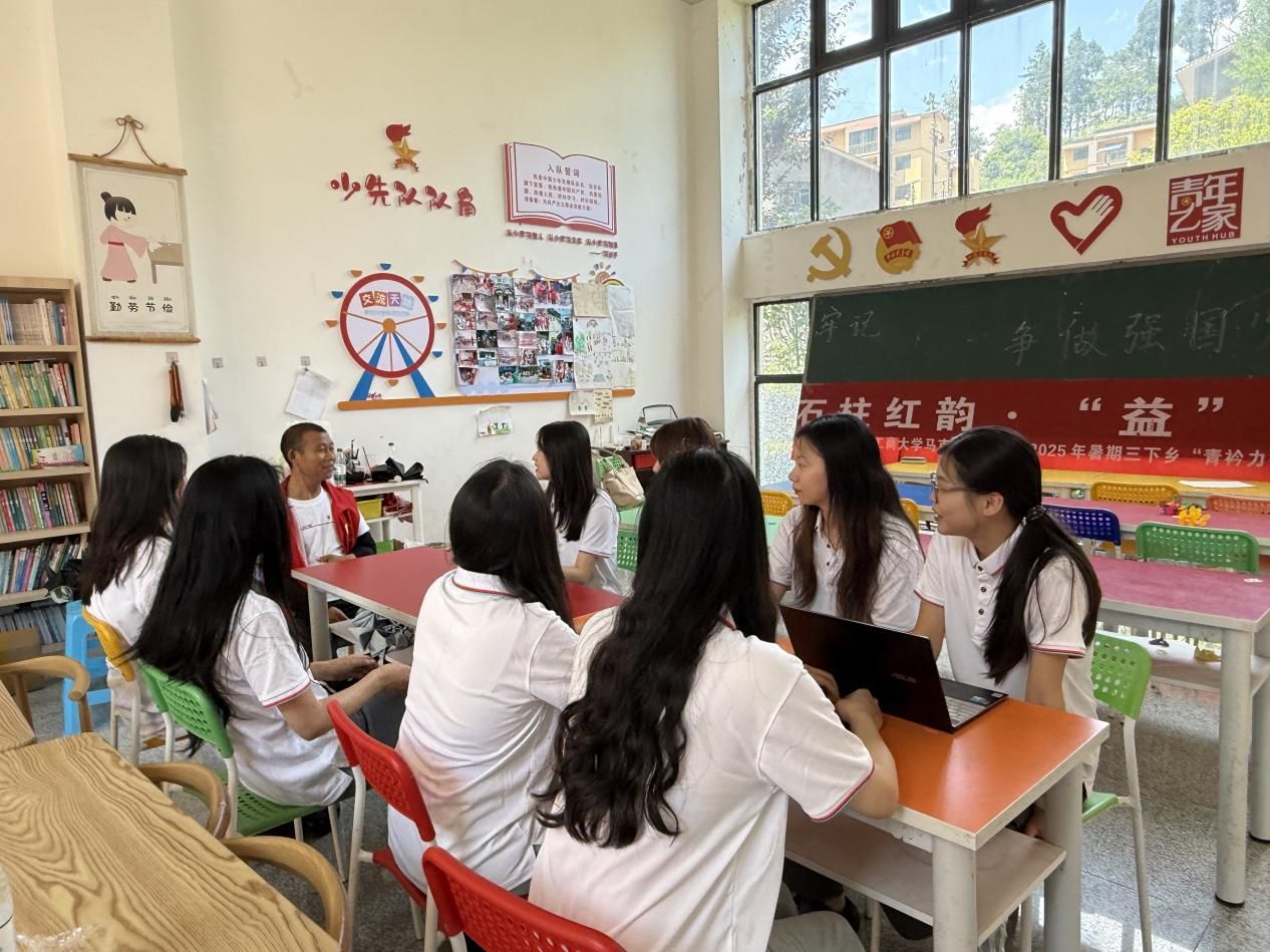 为响应国家乡村振兴战略,上好与现实相结合的“大思政课”,太阳成集团tyc33455cc“青衿力行”爱国主义教育实践团于2025年7月6日至7日在石柱县中益乡开展实践活动。实践团通过与社会工作者座谈交流、组织爱国主义教育活动等方式,深刻体会了基层社会工作的温度与分量。