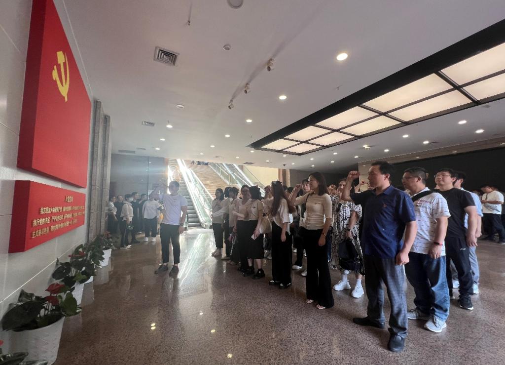 活动伊始,党员们在红岩革命纪念馆一楼,面向党旗,举起右手,庄严宣读入党誓词,铿锵有力的誓言,是全体师生党员对理想信念的铭记,表达着为党的事业奋斗终生的决心与信念。