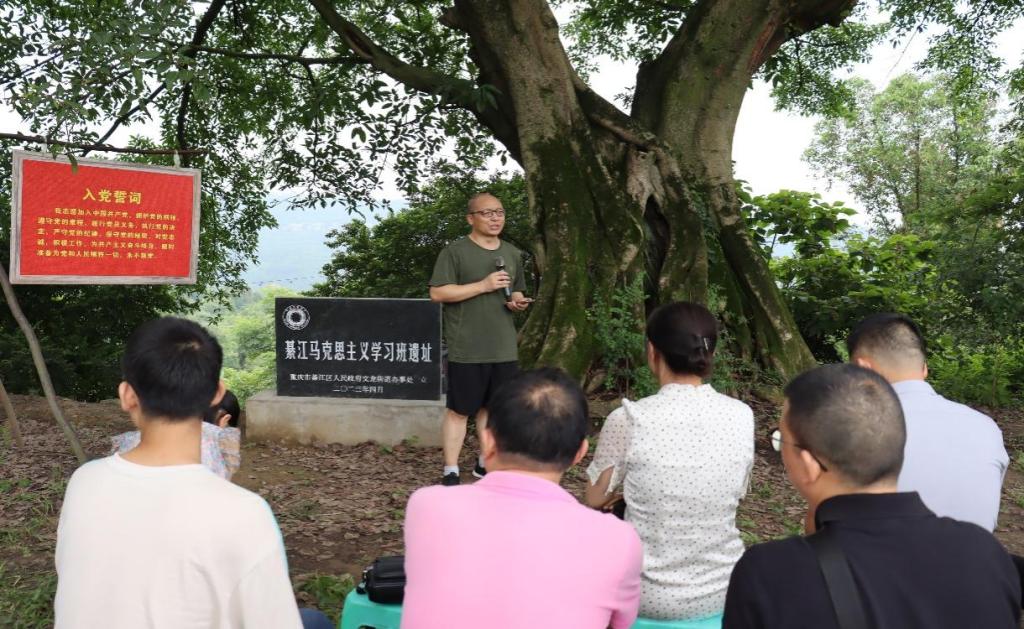 这不是一棵普通的黄葛树,这棵黄葛树见证了一群敢于天下先,敢于抛头颅、洒热血的铁血青年坚定理想信念,追求革命真理,学习马克思主义理论,为共产主义而奋斗终生的光辉历程。共产党员邹进贤、危直士和胡尧钦、陈治均、刘祥书等8名怀揣革命理想的入党积极分子在这棵黄桷树的见证下,开展了为期一个月的马克思主义理论学习,为重庆成立最早的两个党支部之一——中共綦江支部的成立,提供了组织准备和思想准备。党员们围坐黄葛树下,回顾这段峥嵘历史,使党员们深切回顾感受了中国共产党艰苦卓绝的奋斗历程,进一步坚定了支部党员的理想信念,筑牢了思想根基。