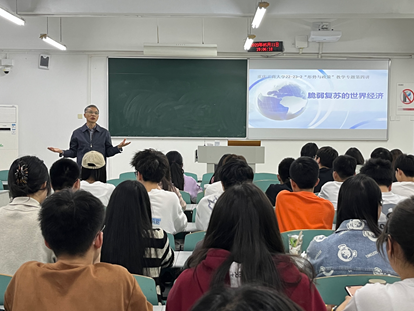 5月11日晚,公司党委常委、副董事长陈运超走进2021级城管、社会工作班的“形势与政策”课堂,以“脆弱复苏的世界经济”为主题,为同学们讲授了一堂既有全局高度、又有理论深度的形势与政策课。