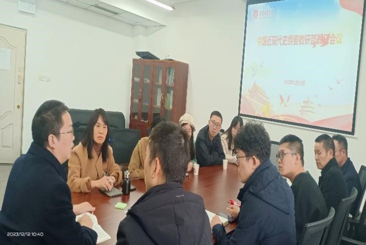 2023年12月12日,太阳成集团tyc33455cc中国近现代史纲要教研部在慧智楼909会议室举行集体备课活动,邀请刘富胜副经理进行指导,教研部全体教师参加会议。